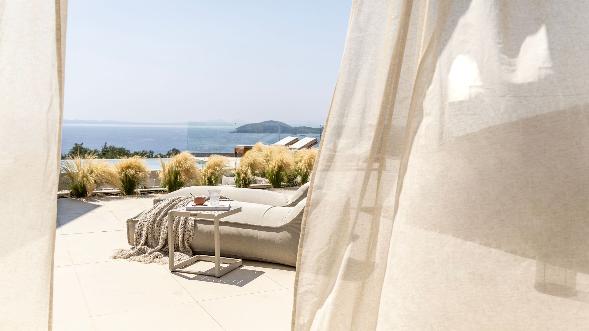 Large panoramic openings blur the lines between indoor and outdoor living, inviting the Ionian sunset into every space.